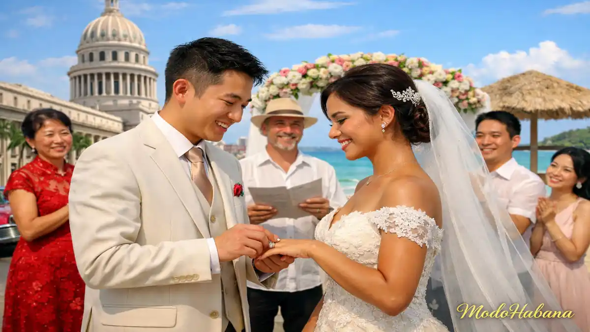 El matrimonio entre cubanos y chinos en Cuba es una unión internacional cada vez más frecuente en 2026, impulsada por relaciones personales, estudios, comercio y movilidad global. La ley cubana permite que un ciudadano chino y un ciudadano cubano se casen legalmente en Cuba mediante una ceremonia civil oficial, siempre que el ciudadano extranjero presente sus documentos correctamente legalizados y traducidos al español. Para que el matrimonio entre cubanos y chinos tenga plena validez jurídica, se requieren el certificado de nacimiento, certificado de soltería, pasaporte vigente y visa del ciudadano chino, todos apostillados o legalizados por su país de origen y por las autoridades cubanas.